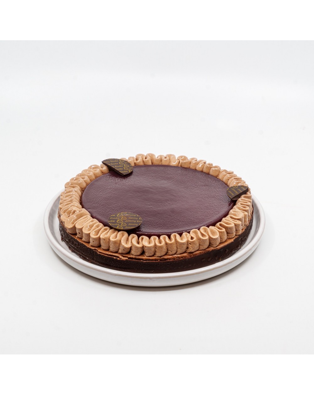 Biscuit chocolat - Croustillant dentelle amande - Compotée de framboise - Mousse chocolat Manjari 62%